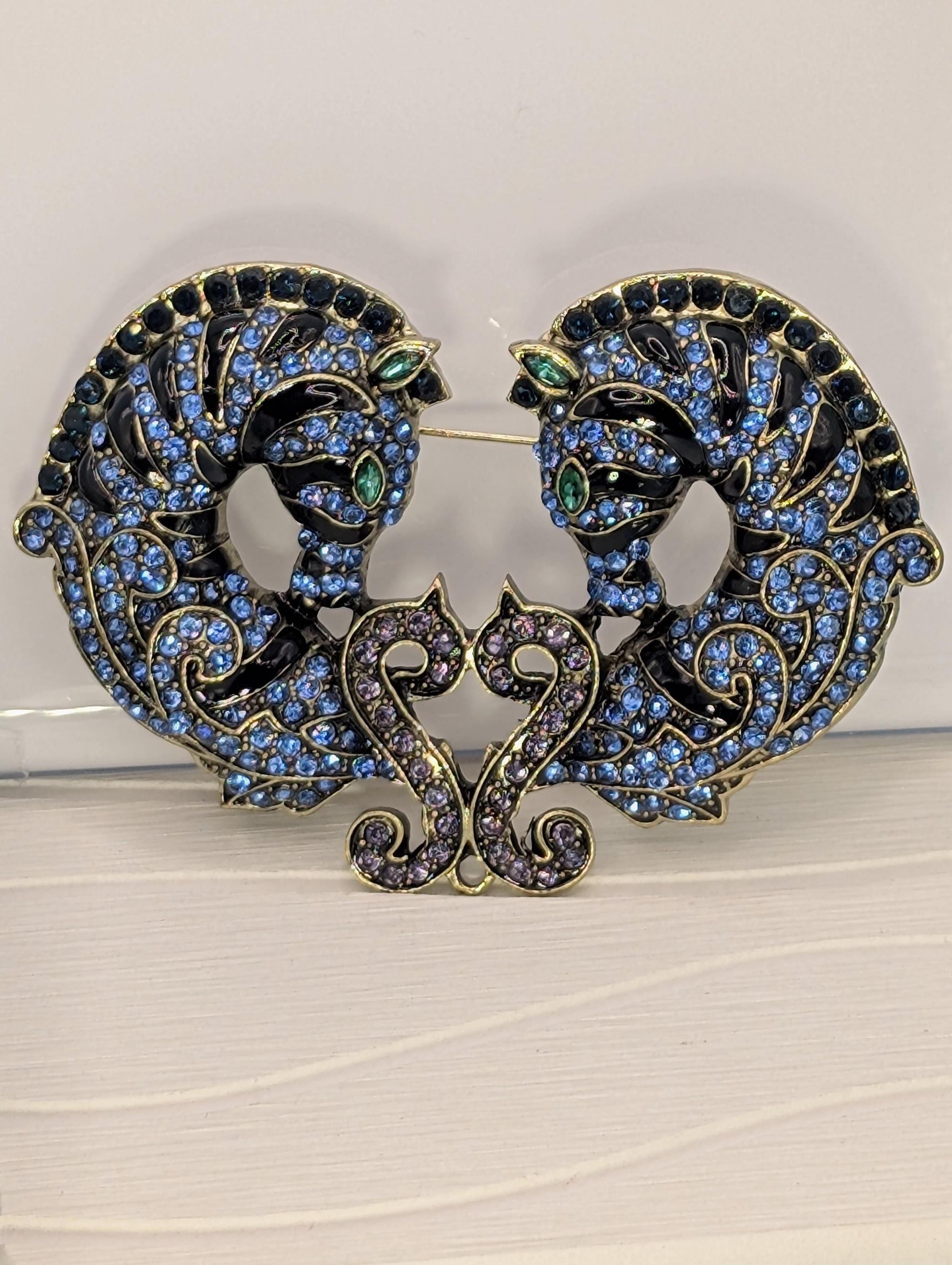 The Blue Seahorse Pair Rhinestone Brooch is a stunning blue rhinestone brooch designed to add a vibrant splash of color and elegance to your fashion accessories. This decorative pin serves as a unique gift idea and a versatile fashion accessory that brings both whimsy and sophistication to any stylish outfit. Crafted with a durable brooch design, it ensures long-lasting shine and wear, making it an ideal blue brooch pin for everyday use or special occasions.