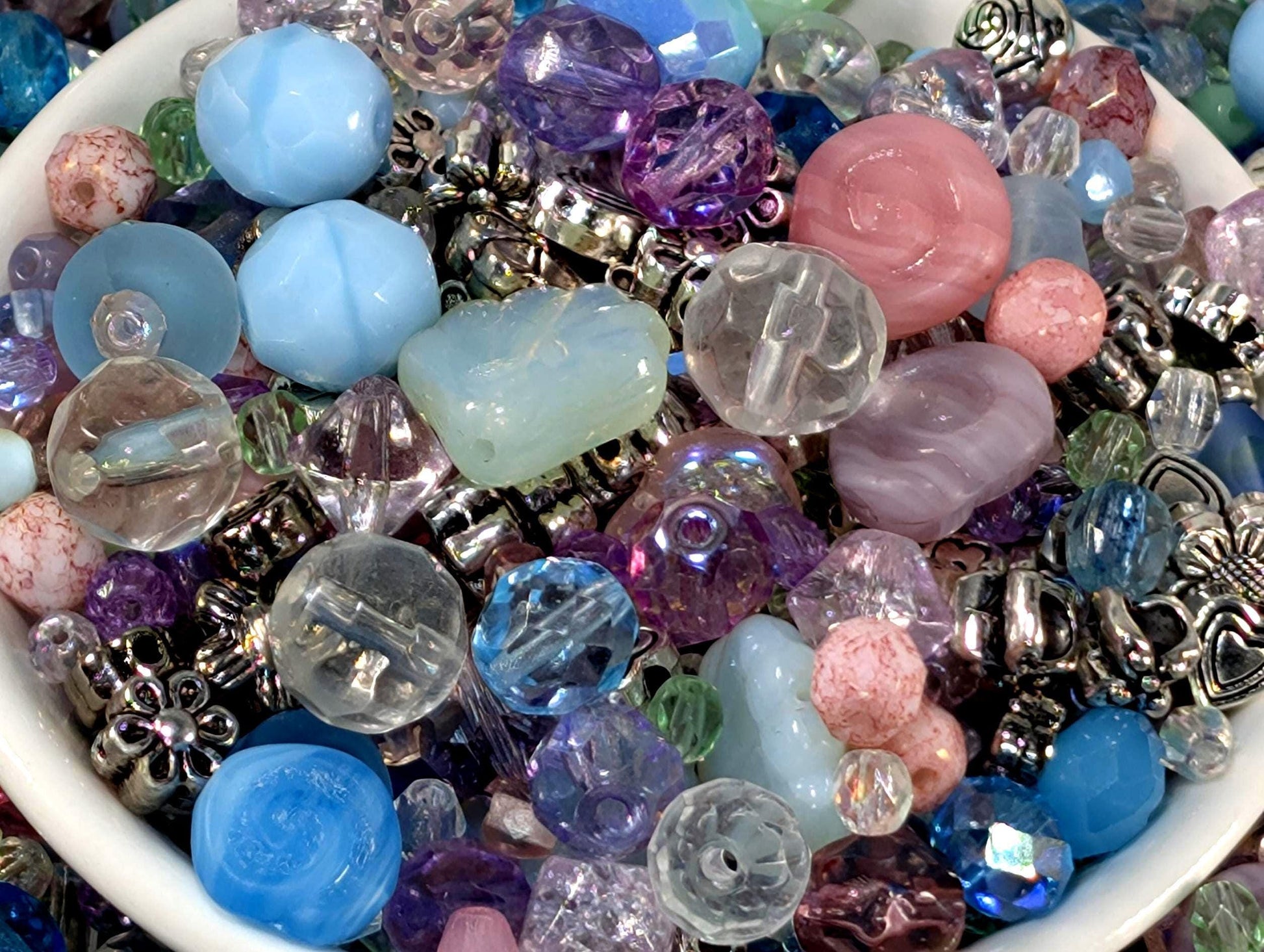 Glass Bead Soup Mix | Artisan Beading Kit with Electroplated Beads Pack & Spring Color Beads