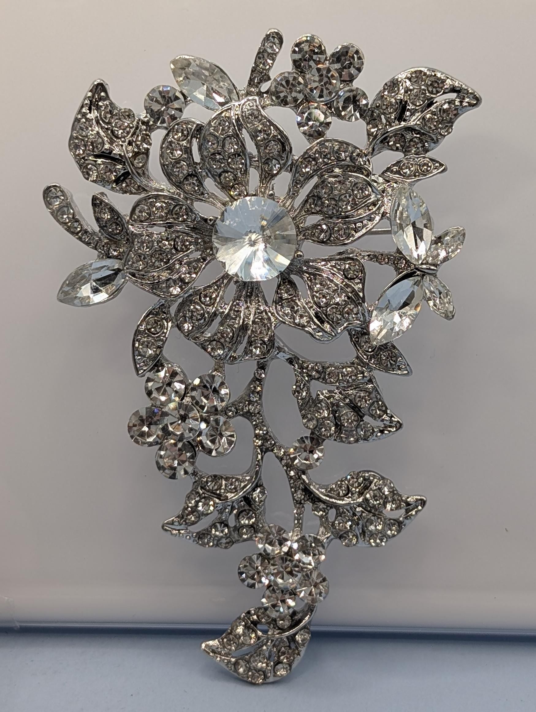 This silver plated brooch is a beautifully crafted flower accessory designed to add a touch of elegance and charm to any outfit. Featuring sparkling cubic zirconia stones, this decorative pin measures approximately 2 inches in diameter, making it an ideal lightweight jewelry pin for jackets, scarves, or hats. The silver plating ensures lasting shine and durability, while the whimsical jewelry piece offers a timeless jewelry accessory that enhances your style effortlessly.