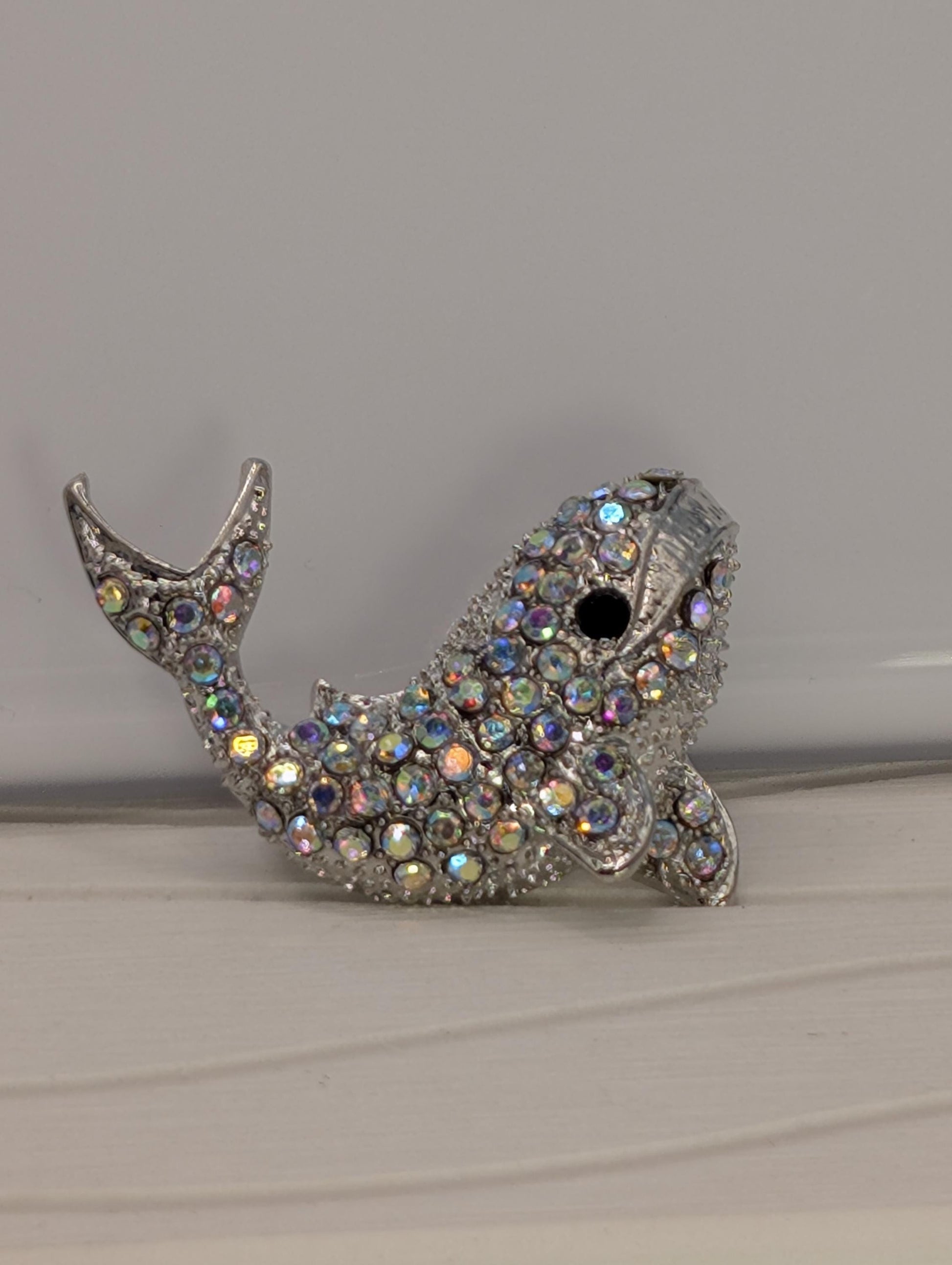 Add a touch of ocean magic to your collection with this silver plated whale brooch. Its sparkling rhinestone charm and versatile styling options make it an essential accessory for anyone who loves distinctive fashion pieces. Shop now and enjoy the blend of charm and quality that only this decorative fish brooch can offer.