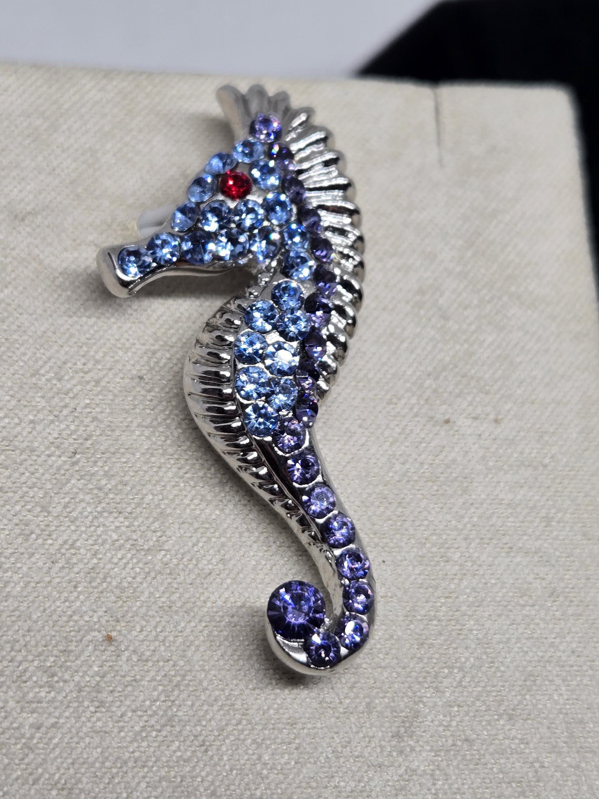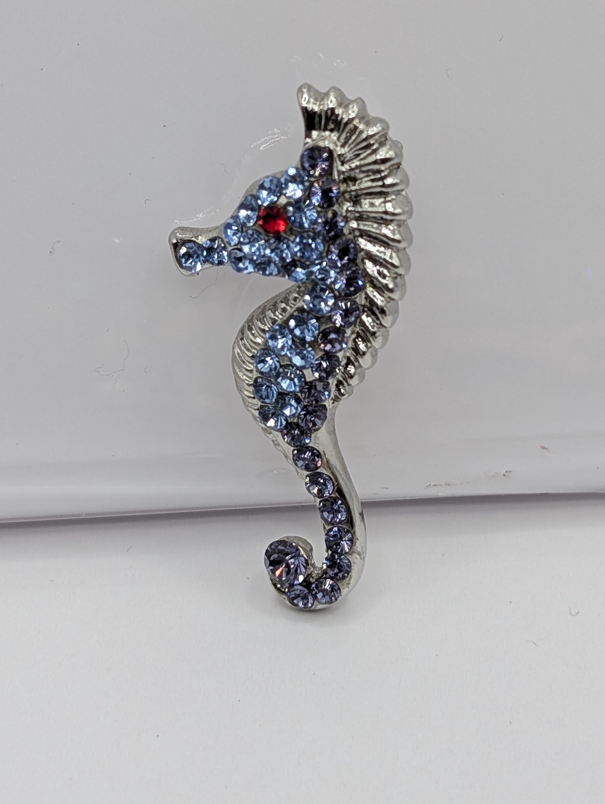 Silver Seahorse Brooch – Light Blue Silver Plated Pin with Ocean Themed Design