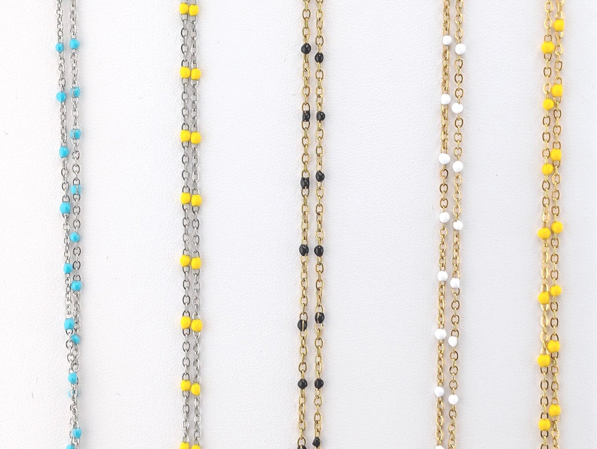 Stainless Steel Silver and Gold Plated Enamel Beaded Cable Link Chain For Jewelry Making