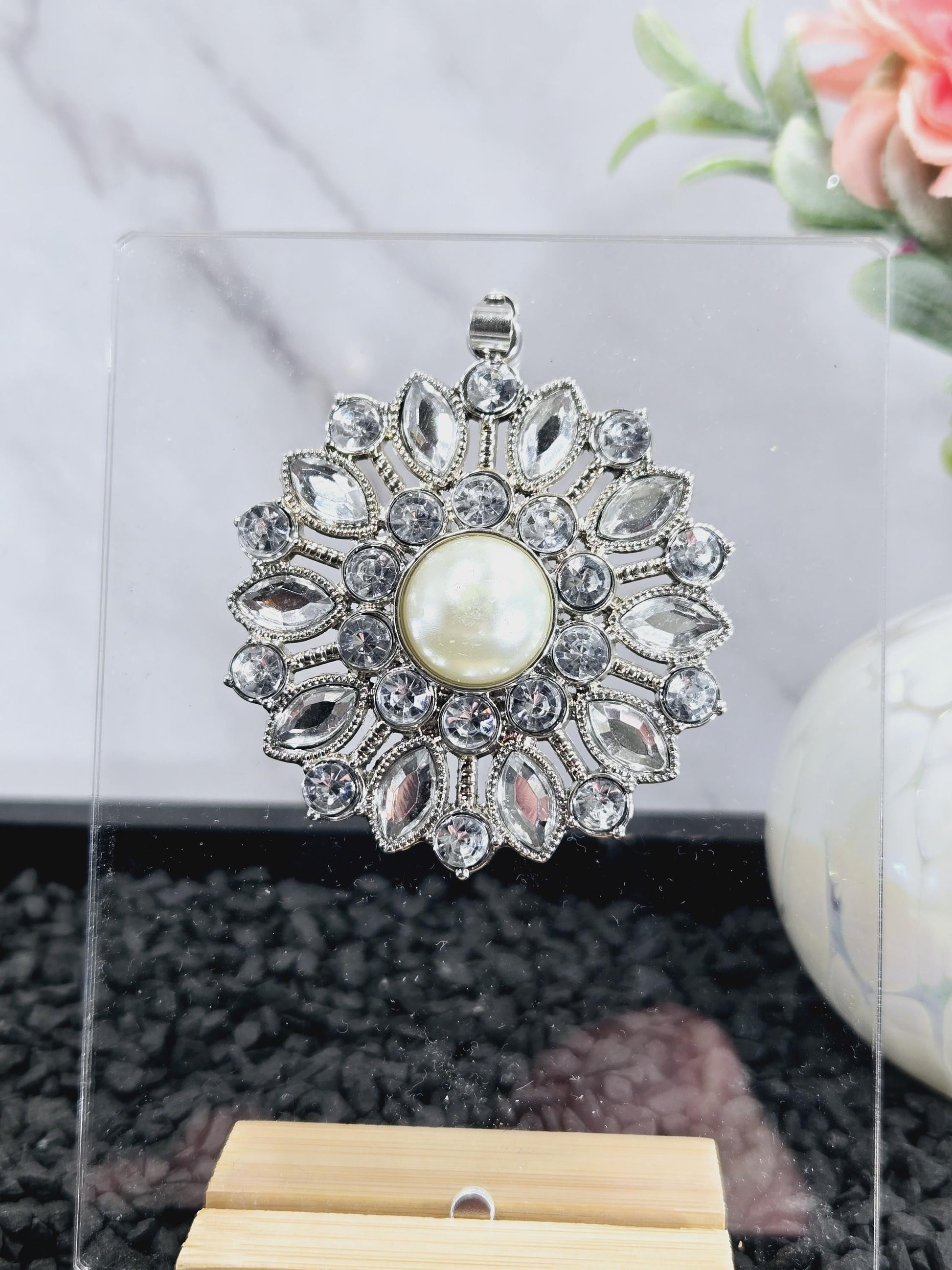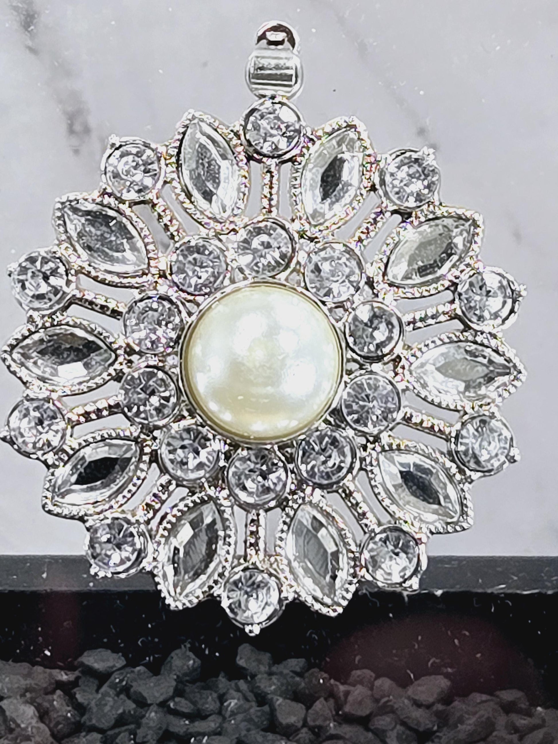 Unique DIY Jewelry, Skull Charm Pendant, Silver Tone Metal, Steampunk Antique Style Medallion, Rhinestone Accent, Vintage Gothic Necklace